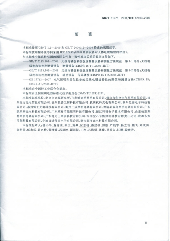 茄子APP在线观看公司参与起草国家标准之《照明设备对人体电磁辐射的评价》